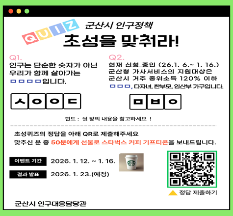 2026년 군산시평생학습관 정규 1기 프로그램 수강생 모집2026년 군산시평생학습관 정규 1기 프로그램 수강생 모집 ○ 접수기간 [온라인] 2026. 1. 20.(화) 09시 ~ 1. 28.(수) 18시 [방 문] 2026. 1. 21.(수) 09시 ~ 18시○ 모집대상 : 군산시민, 관내2026.01.08