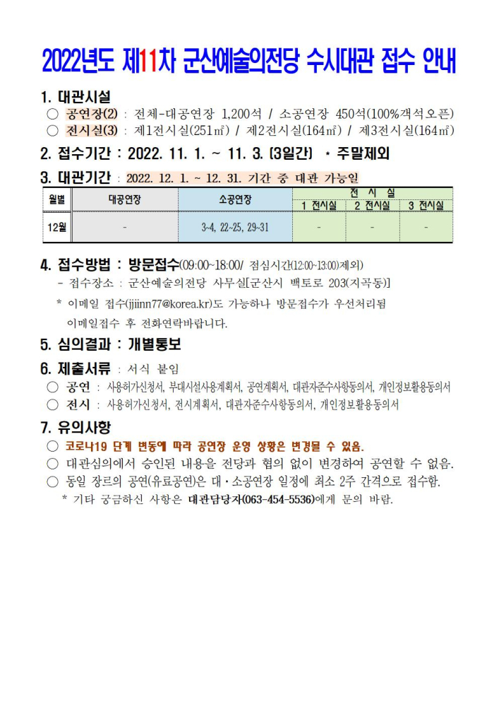 36 2022년 군산예술의전당 수시대관(11차) 접수안내 다운받기 예술의전당관리과 22.10.26 1197