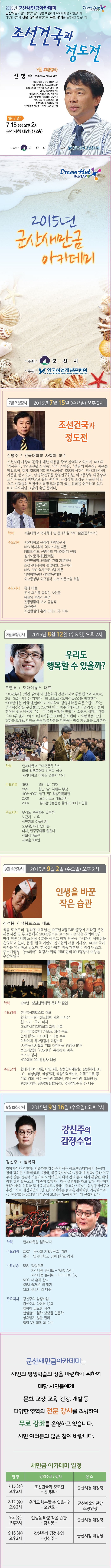 123 [안내] 2015년 < 군산새만금아카데미 > 강좌 다운받기 예술의 전당 15.07.09 1576