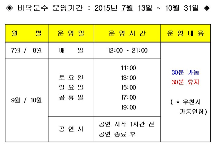 [알림] 군산예술의전당 야외광장 바닥분수 운영기간 안내