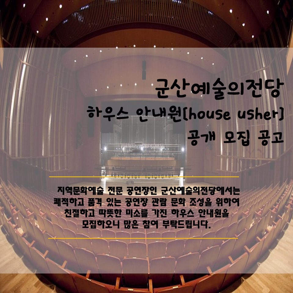 - 군산예술의전당 하우스 안내원 모집 공고 -