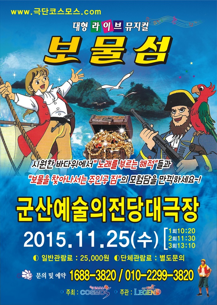 134 [대관공연안내] 11월 25일 대공연장 - 대형라이브뮤지컬 보물섬 다운받기 예술의 전당 15.10.22 1228