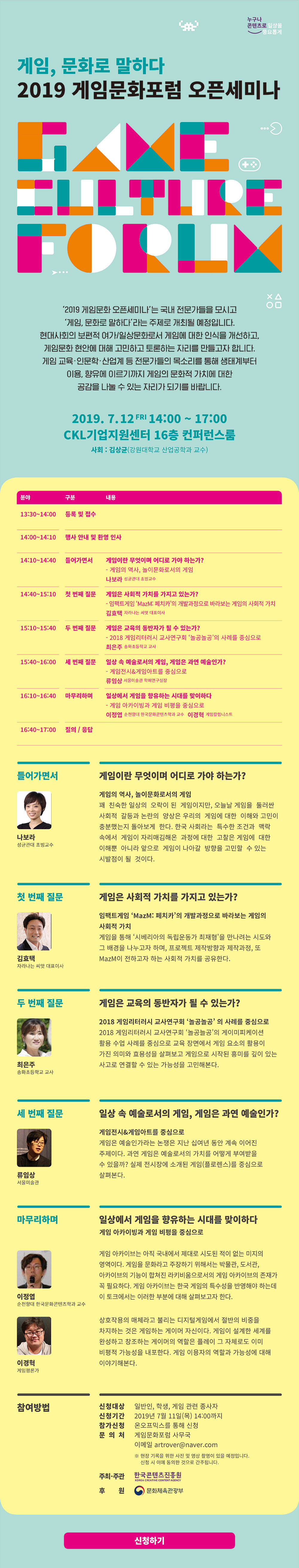 204 [한국콘텐츠진흥원] 2019 게임문화포럼 오픈세미나 - 게임, 문화로 말하다 다운받기 박아린 19.07.08 1627