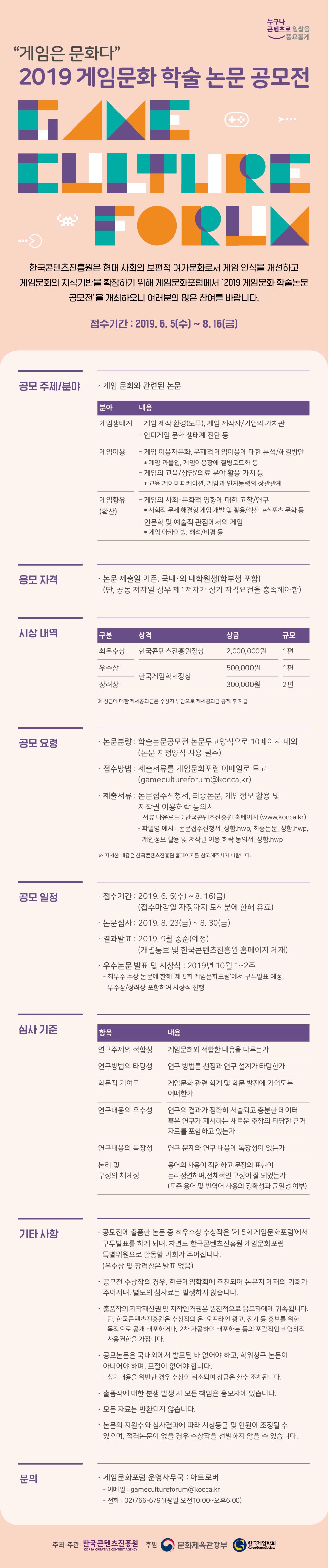 208 [한국콘텐츠진흥원] 2019 게임문화 학술논문 공모전 - 게임은 문화다 다운받기 박아린 19.07.23 2069