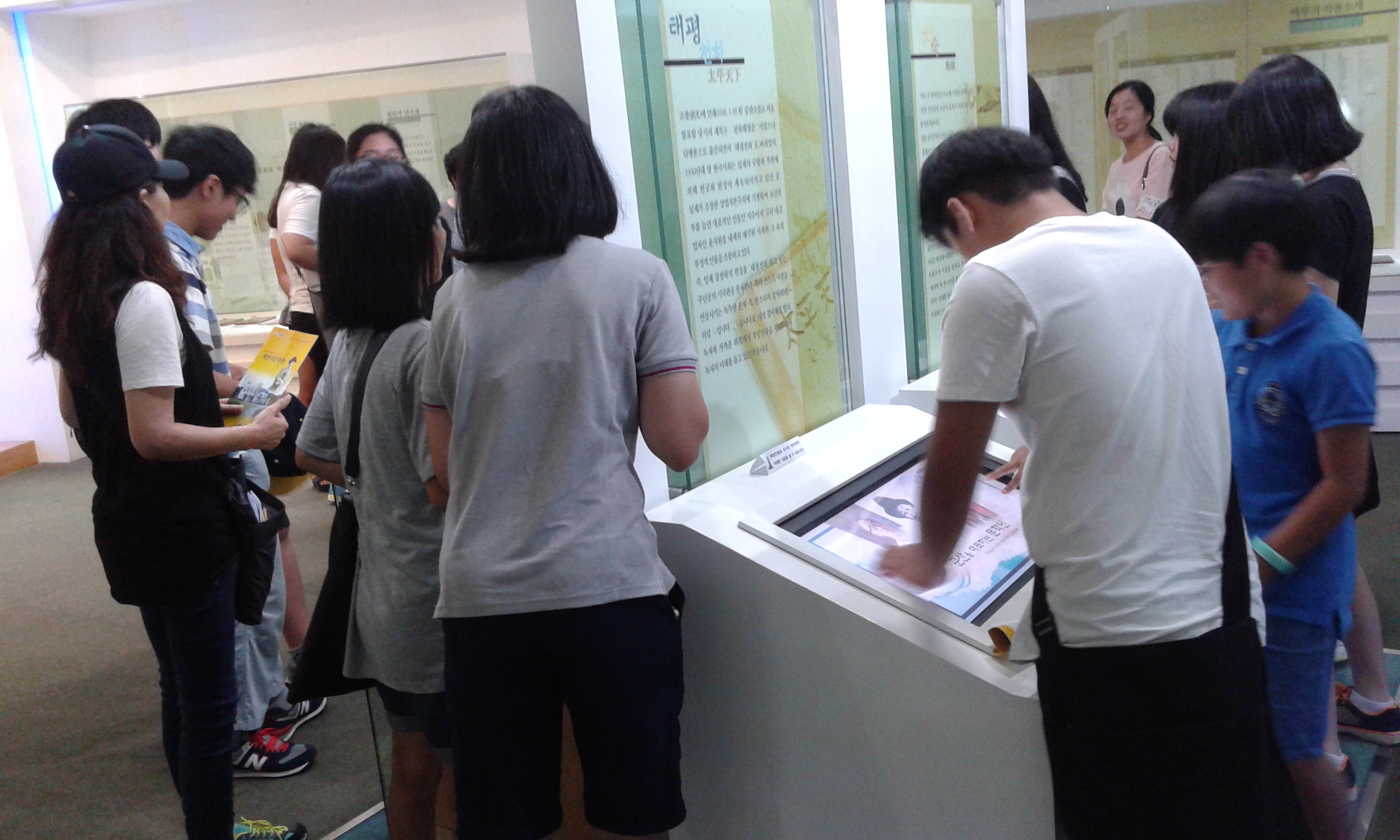 작가 탐방에 몰두하는  관람객들...
