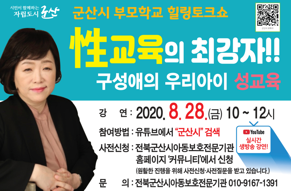 22 군산시 부모학교 힐링토크쇼 "구성애의 우리아이 성교육" 비대면온라인강연 다운받기 아동청소년과 20.08.25 1171