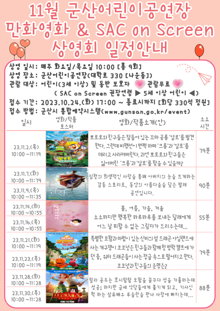 66 군산어린이공연장 11월 SAC on Screen 상영회「심청」일정안내 다운받기 예술의전당관리과 23.10.19 600