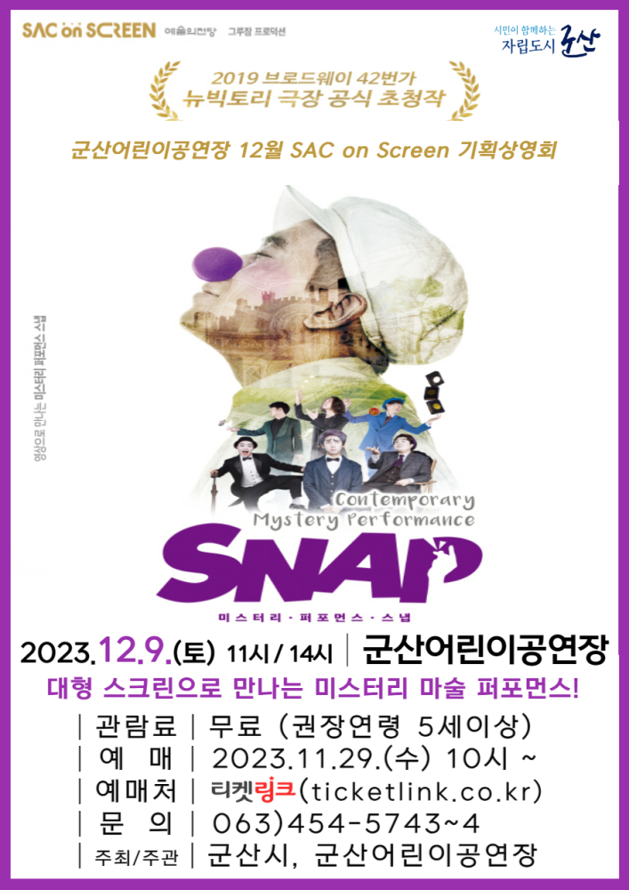 69 군산어린이공연장 12월 기획상영회「스냅」 다운받기 예술의전당관리과 23.11.24 599