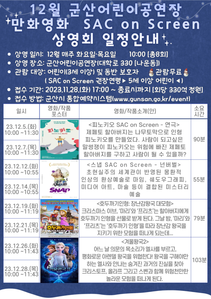 70 2023년 12월 어린이공연장 만화영화 & SAC on Screen 상영회 다운받기 예술의전당관리과 23.11.27 660
