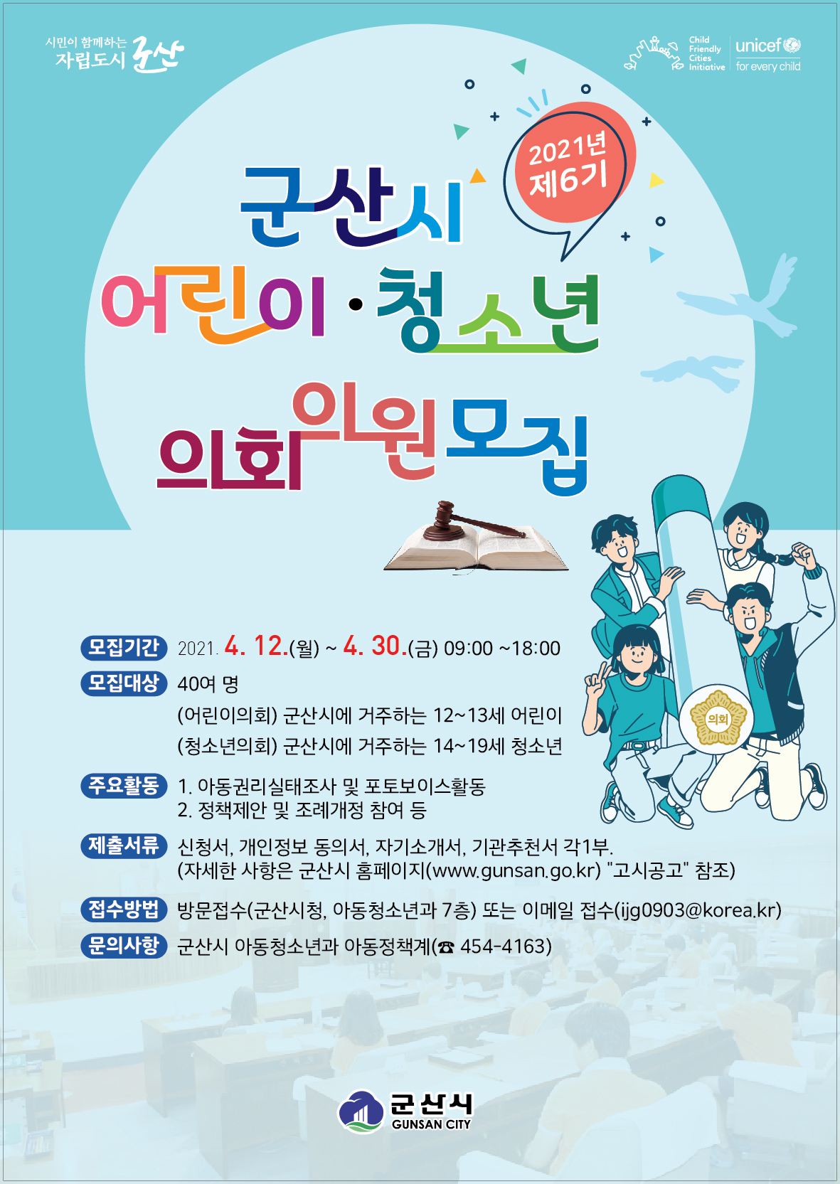 2021년 제6기 군산시 어린이‧청소년의회 의원 모집