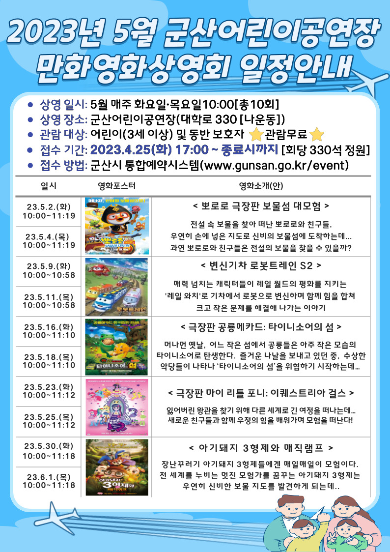 다운받기 5월만화영화상영표.jpg - 5월만화영화상영표 (파일크기: 372 kb, 다운로드 : 342회) 미리보기