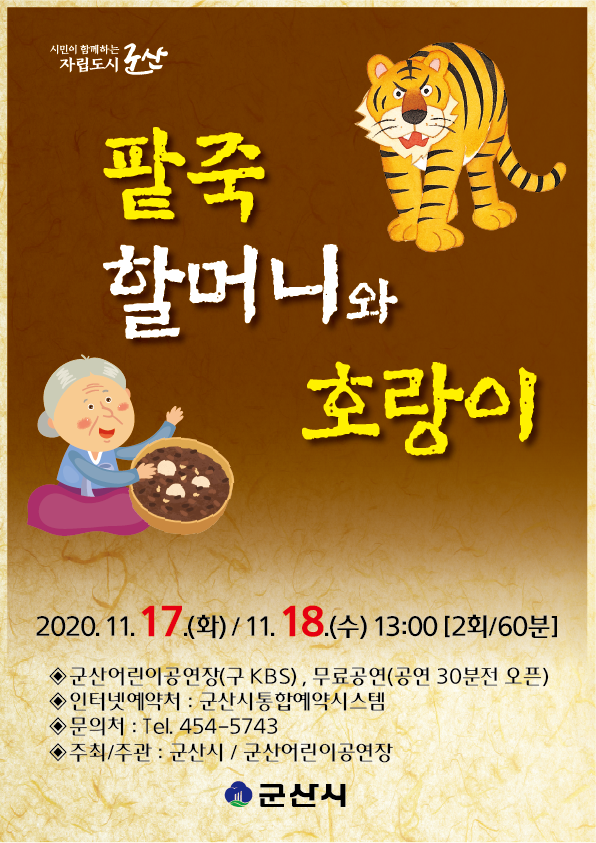군산어린이공연장 11월 기획공연 '팥죽 할머니와 호랑이' 안내