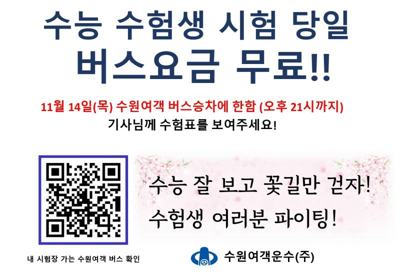 7555 2020 수능 시험장 경우하는 수원여객 무료탑승 다운받기 *** 19.11.12 3354