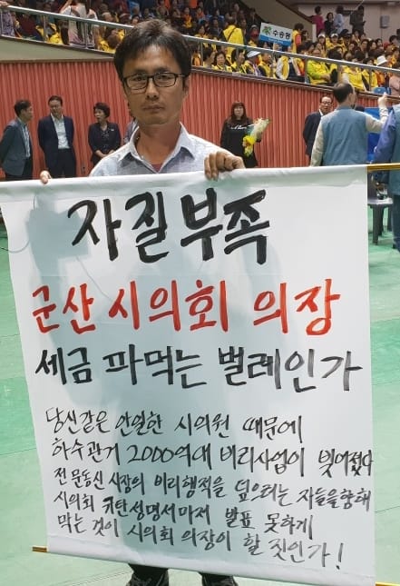 7534 오늘 시민의 날. 군산 월명 체육관에서의 1인 시위. 다운받기 *** 19.10.01 3624