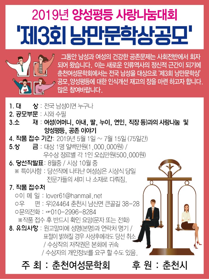 7479 양성평등 낭만문학상 공모 다운받기 *** 19.06.18 3294