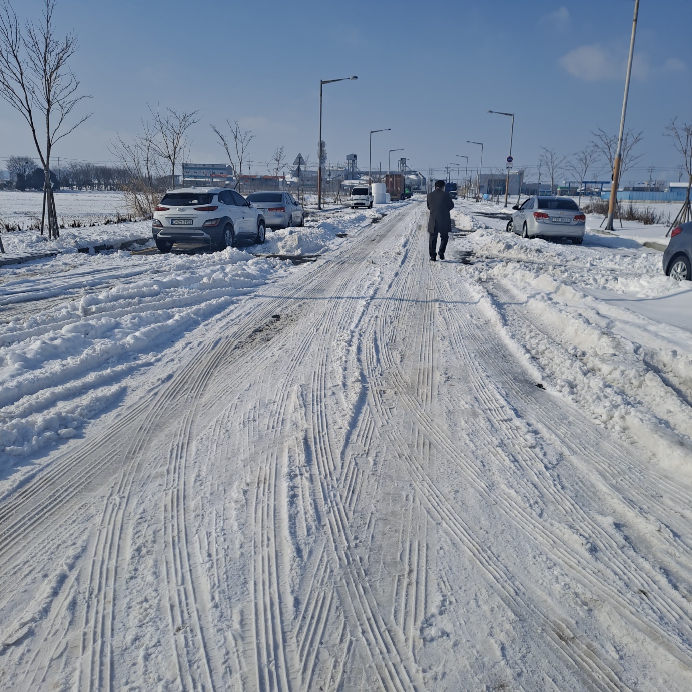 큰도로도 제설이 안되서 다니기 힘든대. 왕복2차선 도로인 동네 들어가는 길은 아예 안되서 더 힘듭니다.