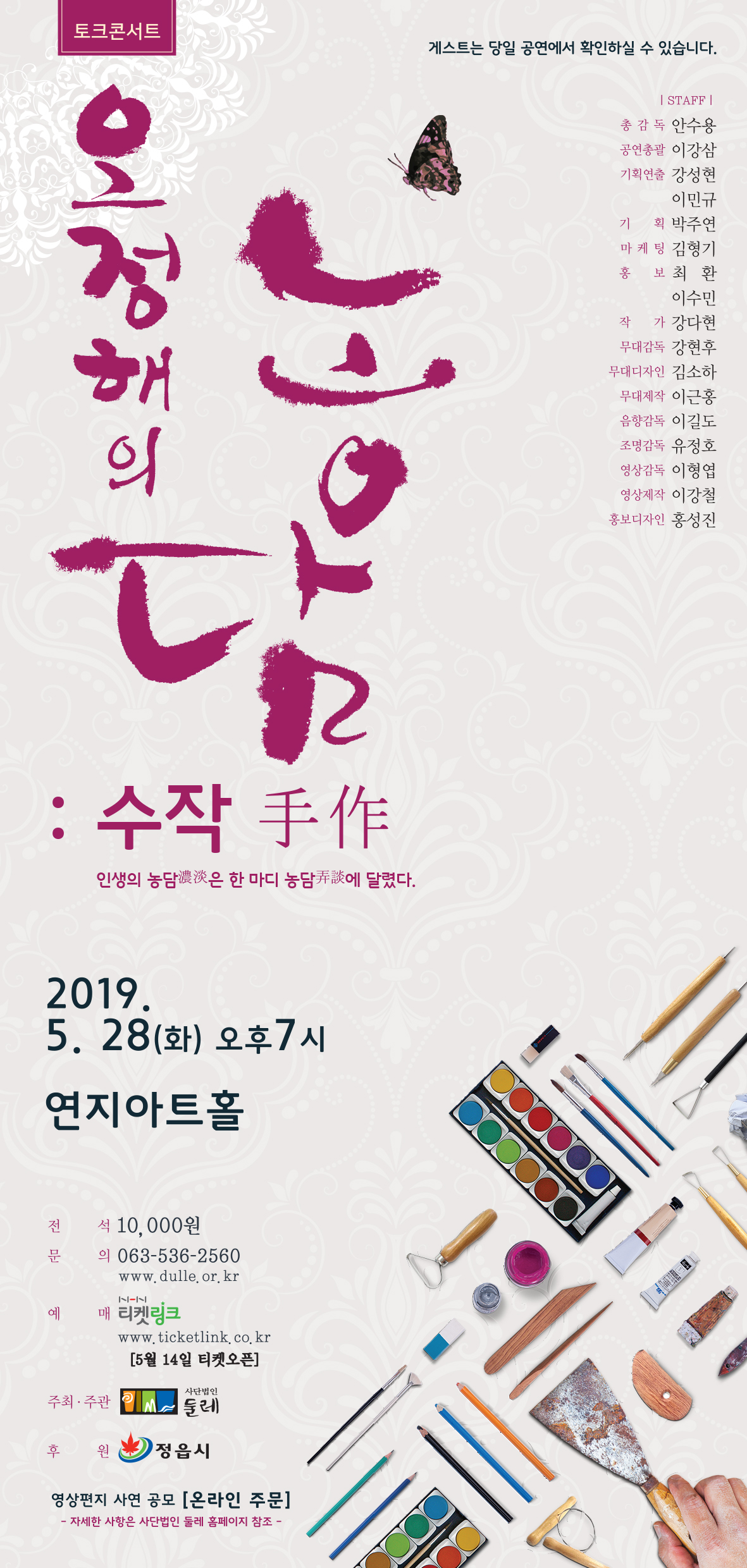 매월 마지막 주 화요일에 찾아오는 토크 콘서트 오정해의 농담, 그 세 번째 시간인 ‘수작 手作’이 오는 5월 28일 오후 7시,