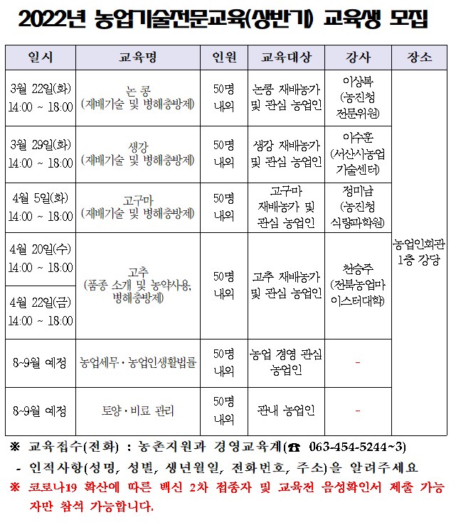 | 451 | 2022년 농업기술전문교육(상반기) 교육생 모집 |