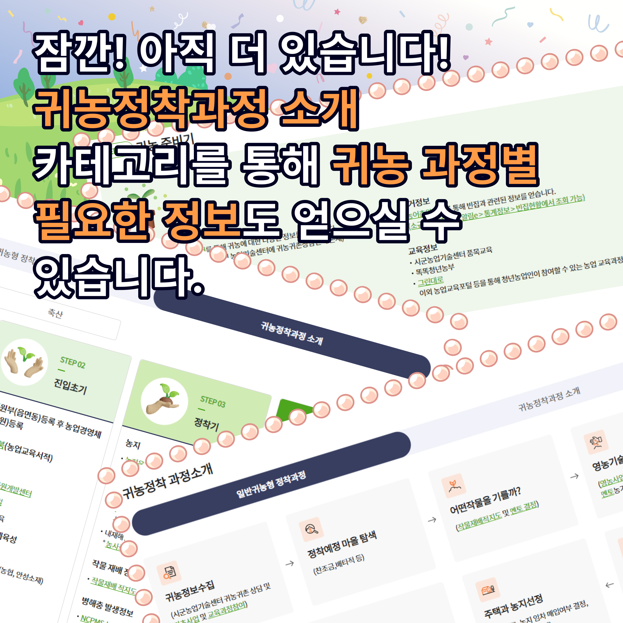 농촌진흥청에서는 정책사업을 통해 유입된 청년농업인에게 필요한 사업, 교육, 사례 등 다양한 정보를 제공하는