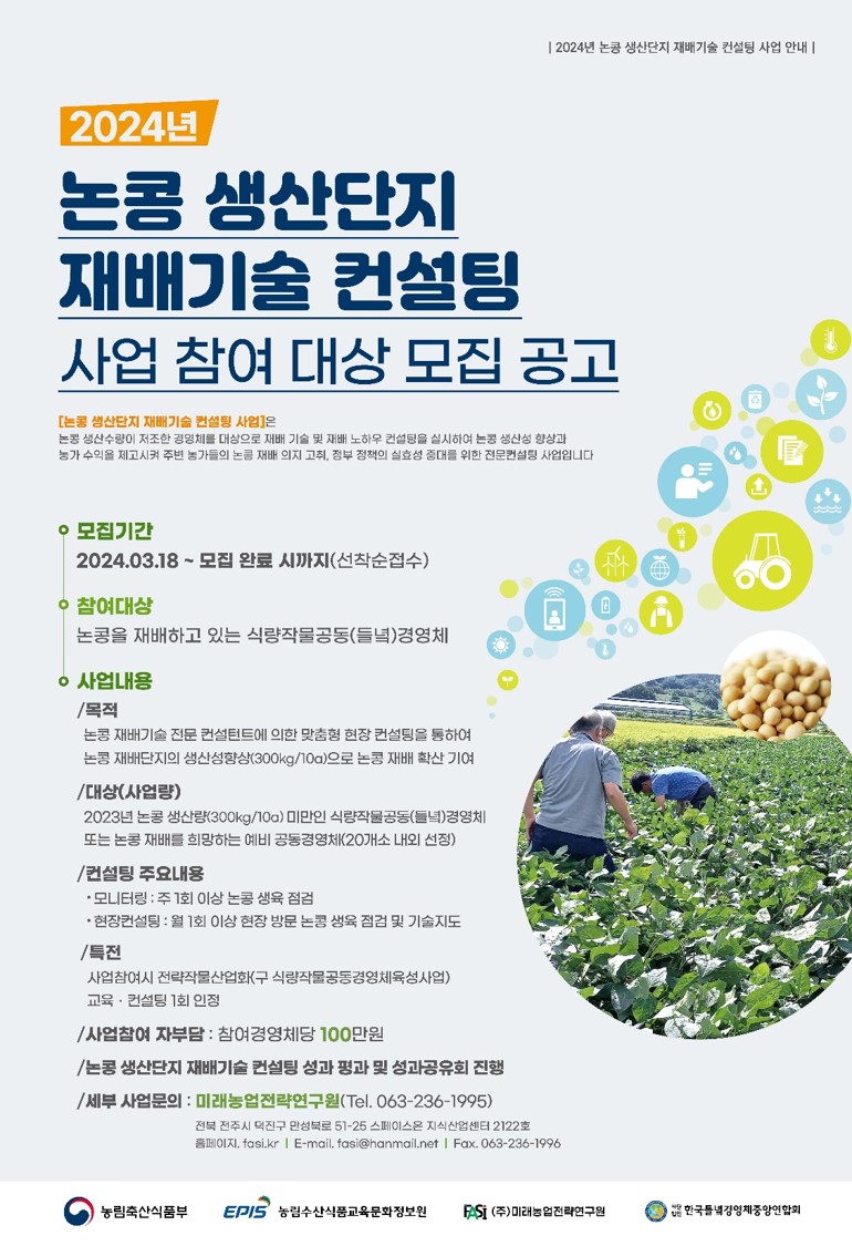 2024년 논콩 생산단지 재배기술 컨설팅 사업 참여 홍보