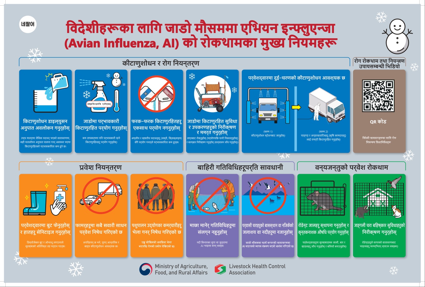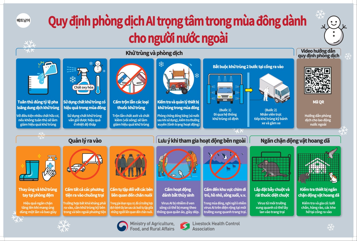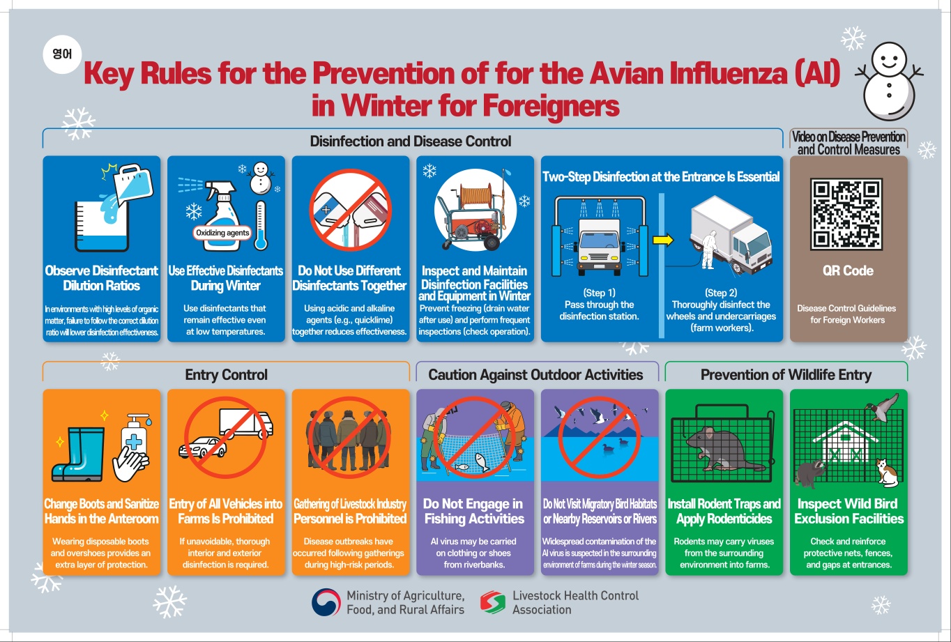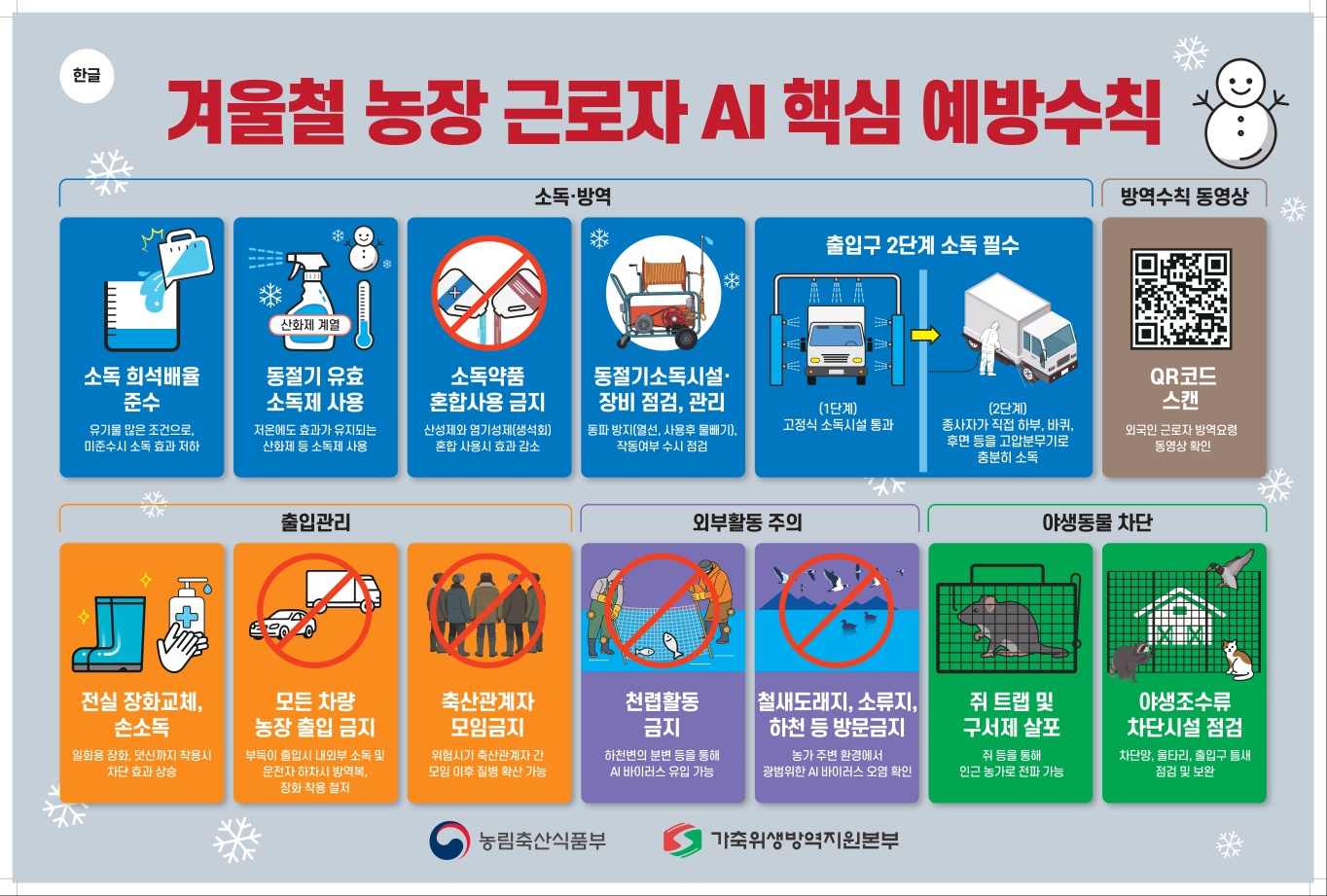 겨울철 농장 근로자 AI 핵심 예방수칙(외국어 및 한국어)