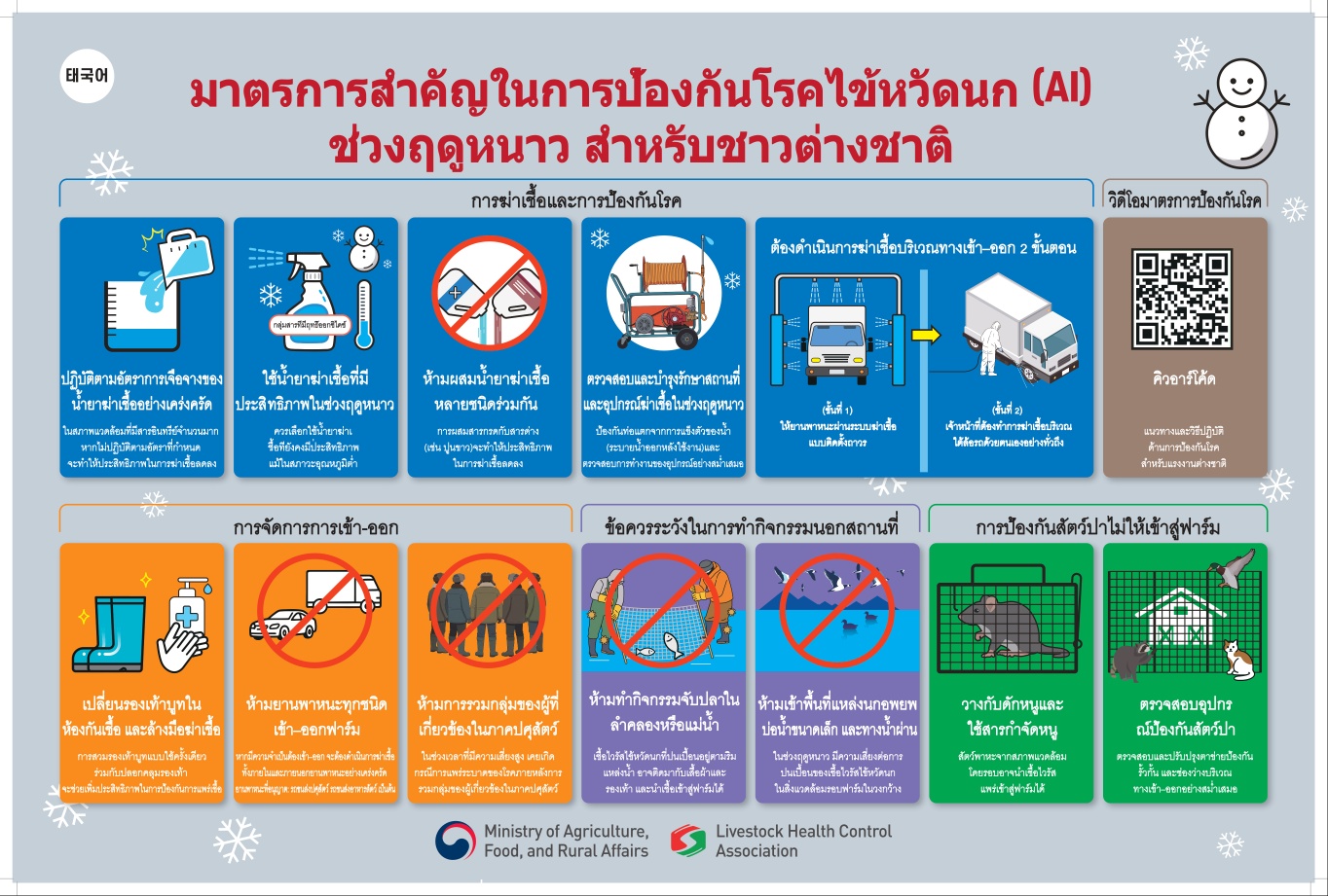 겨울철 농장 근로자 AI 핵심 예방수칙(외국어 및 한국어)