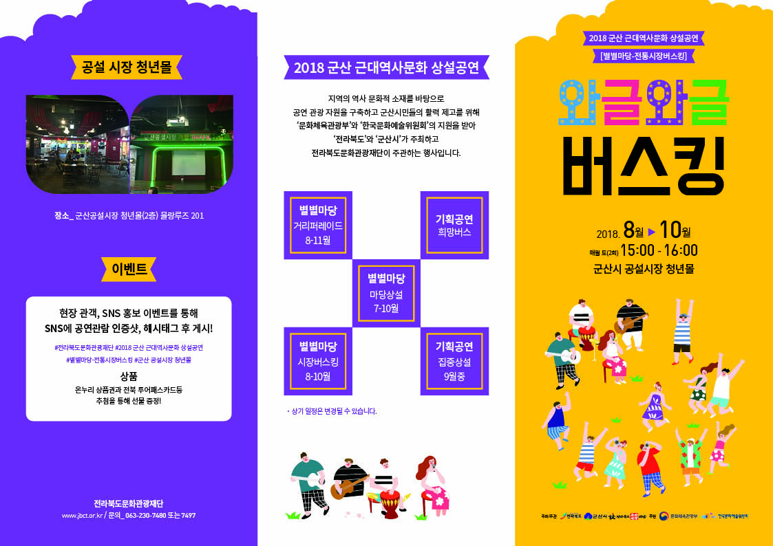 다양한 공연, 이벤트 상품까지 준비되어있으니 군산 구경과 함께 흥미로운 공연도 즐기러 와주세요!