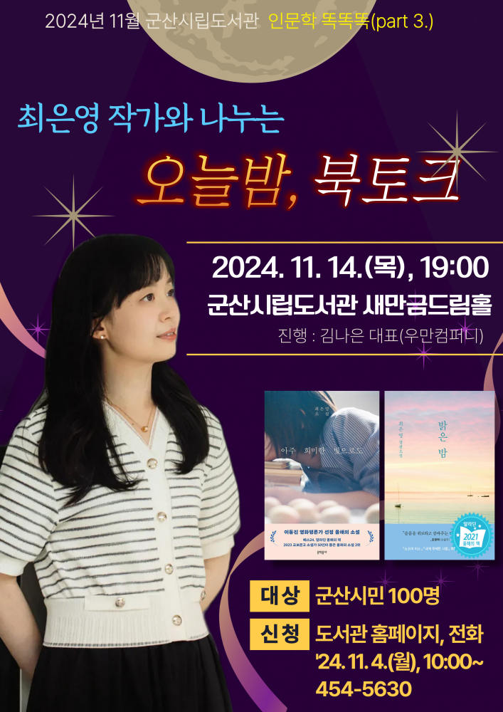 | 371 | 2024년 군산시립도서관 '최은영 작가와 나누는 북토크' 운영 |