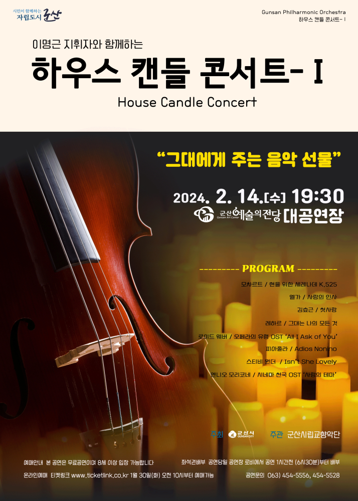 130 군산시립교향악단 하우스 캔들 콘서트-1 <그대에게 주는 음악선물> 안내 다운받기 군산시립교향악단 24.01.30 884