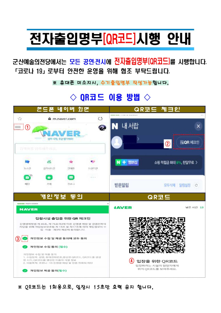 97 예술의 전당 공연 관람시 전자출입명부(QR코드) 시행 안내 다운받기 시립예술단 20.06.26 1871