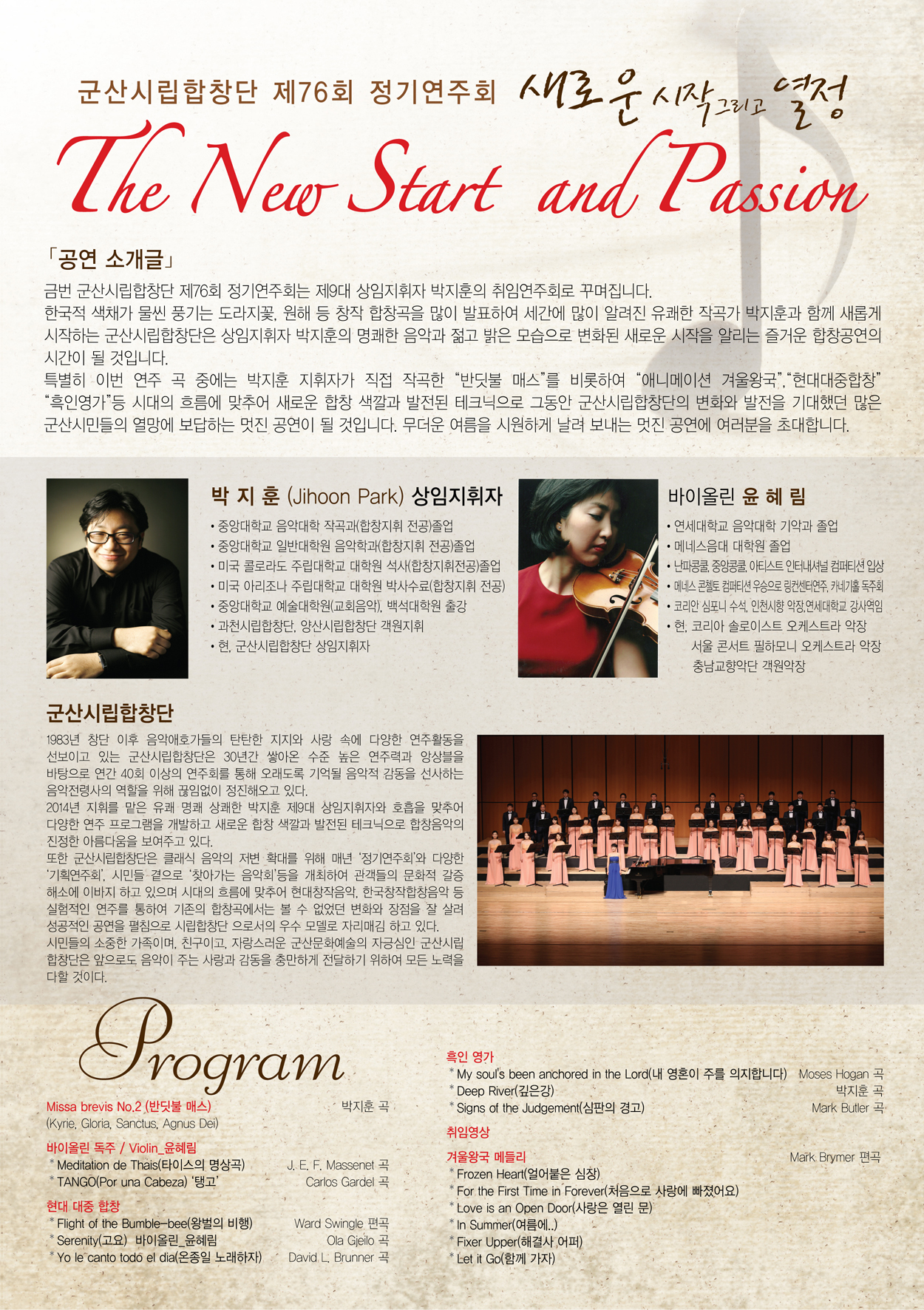 군산시립합창단 제76회 정기연주회 <새로운 시작 그리고 열정> 공연 안내