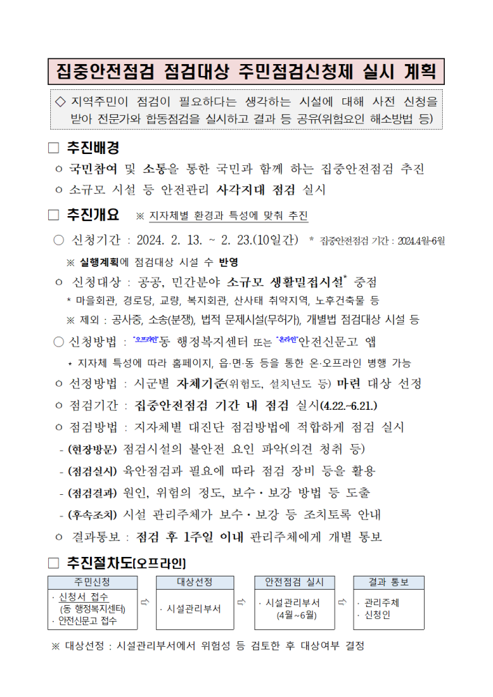 | 127 | 2024년 집중안전점검 점검대상 주민점검 신청제 실시 |