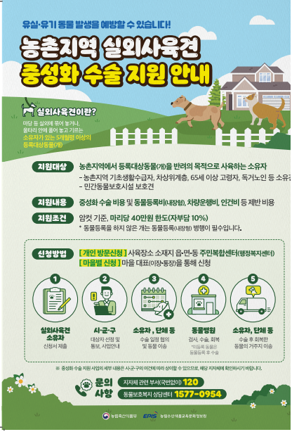 | 140 | 농촌지역 실외사육견 중성화수술 지원안내 |