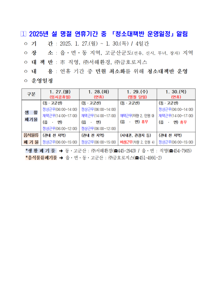 | 235 | 2025년 설 명절 연휴기간 중 청소대책반 운영일정 알림 |