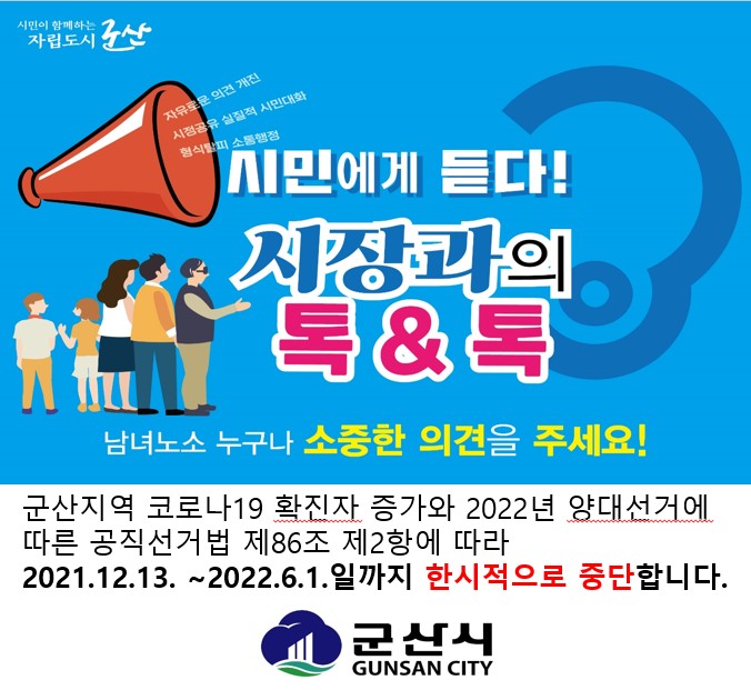 | 717 | 시장과의 톡&톡 한시적 중단 안내 |