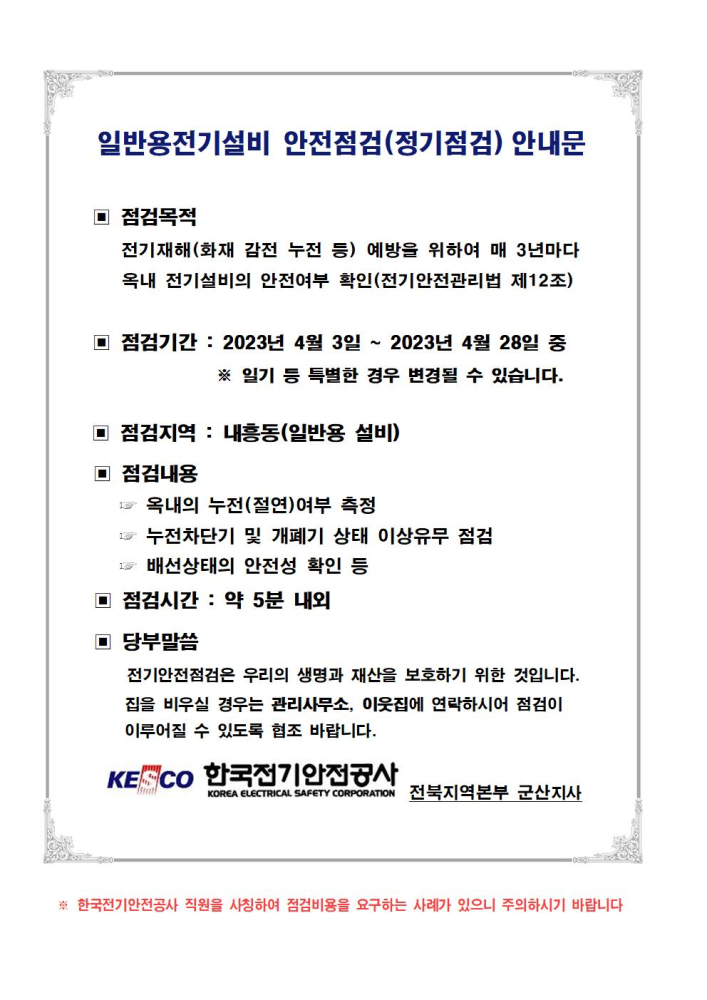 | 846 | 내흥동 일반용전기설비 정기점검 안내 |