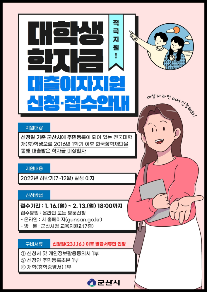| 5745 | 2022년 하반기 군산시 대학생 학자금 이자지원사업 신청·접수 안내 |