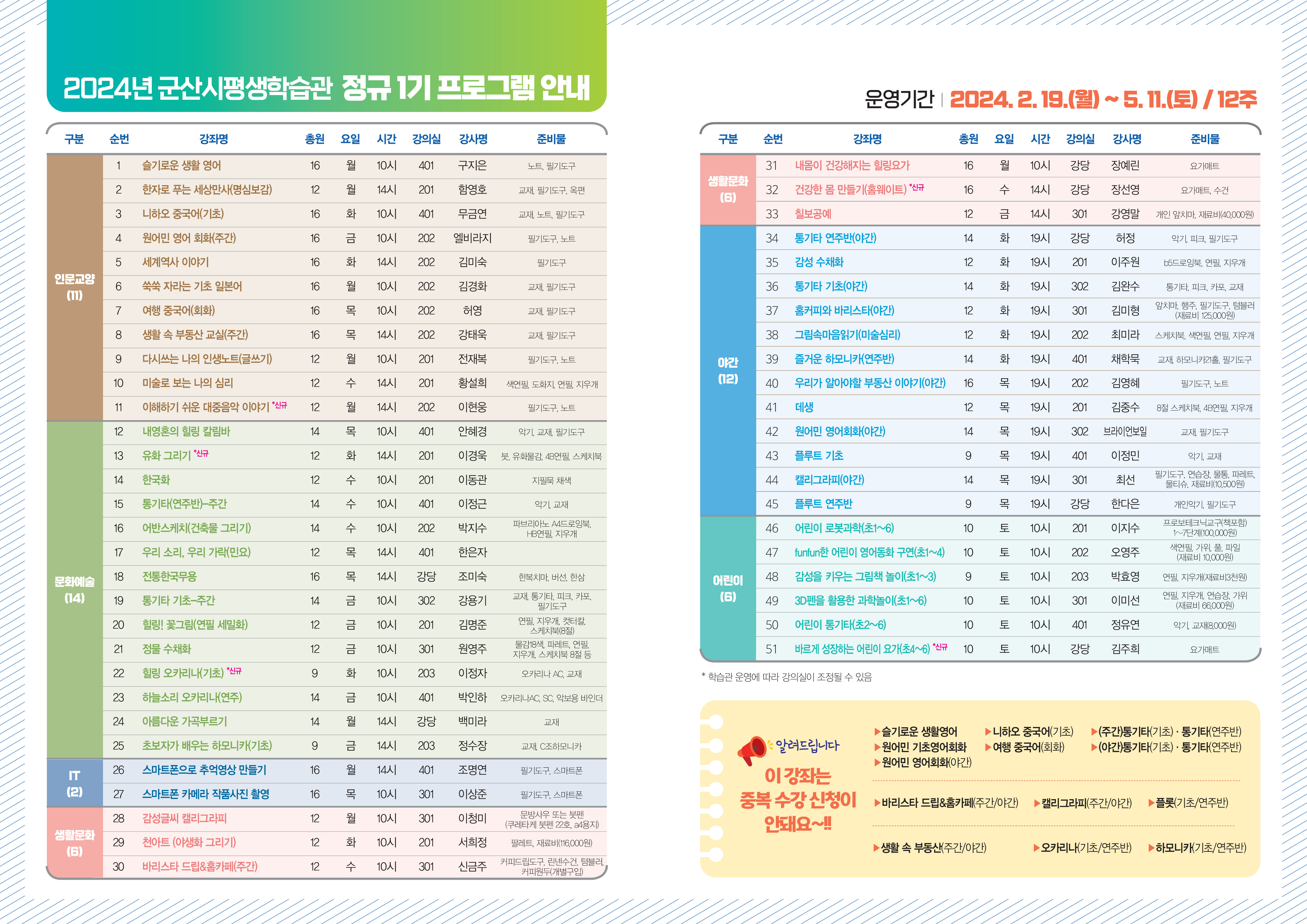 2024년 군산시평생학습관 정규 1기 수강생 모집