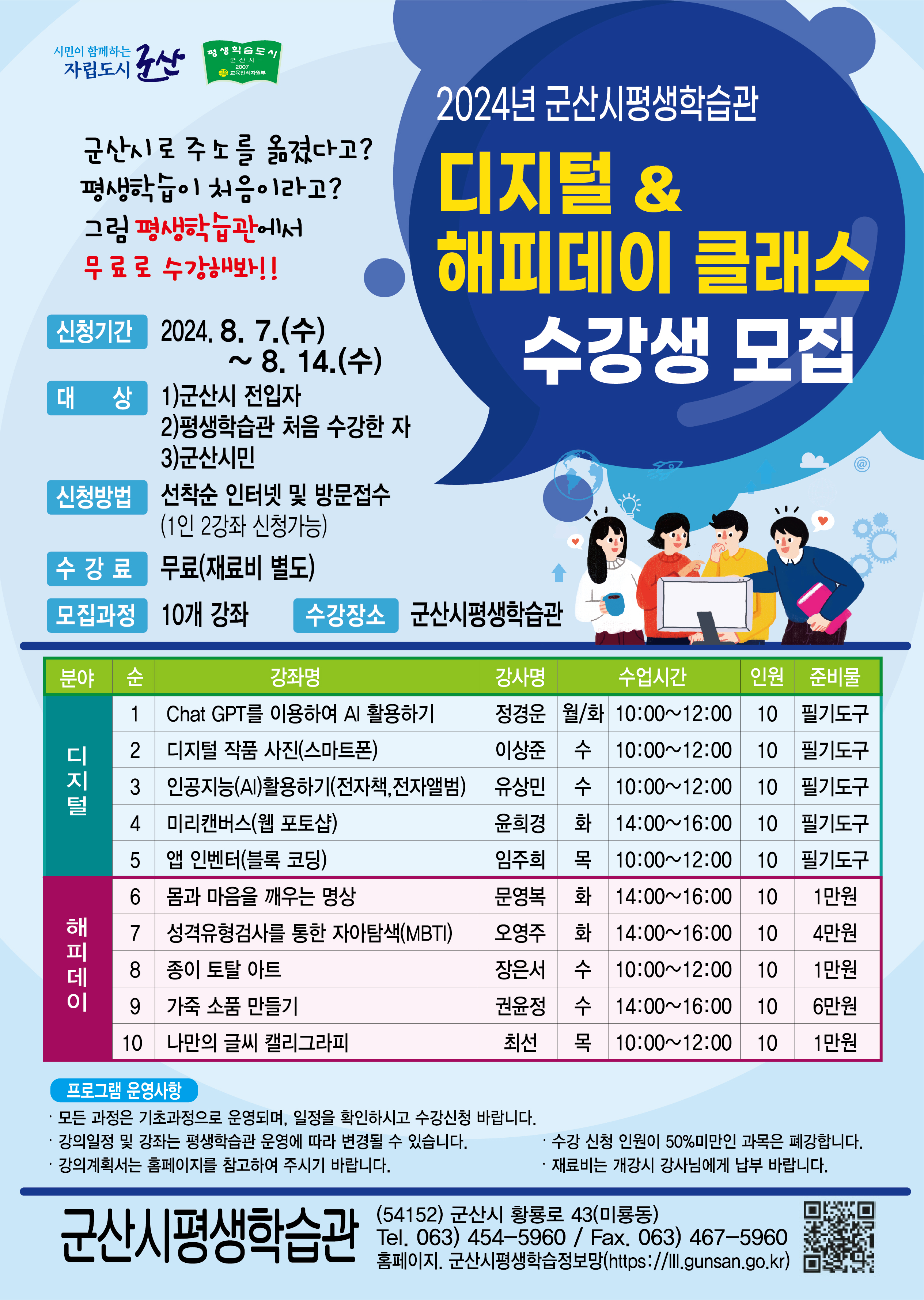 | 416 | 2024년 군산시평생학습관「디지털&해피데이 클래스」수강생 모집 홍보 |