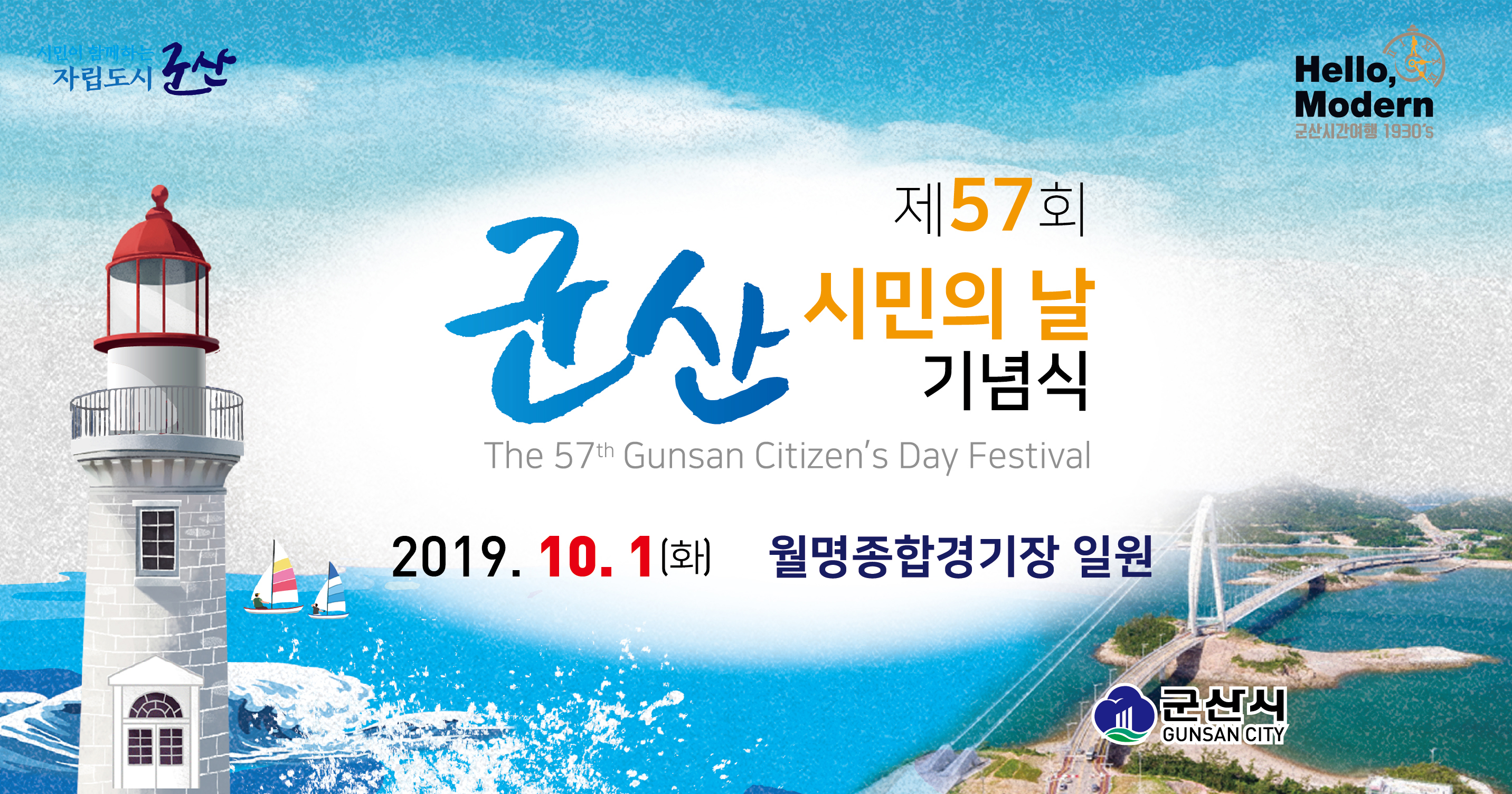 제57회 군산시민의 날 기념식이 2019. 10. 1.(화) 월명종합경기장 일원에서 펼쳐집니다.