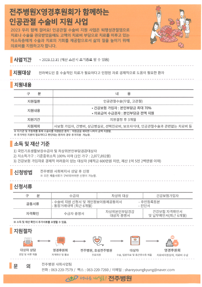 | 58 | 건강나눔영경후원회 '2023 우리 함께걸어요! 인공관절 지원사업' 추가지원 안내 |