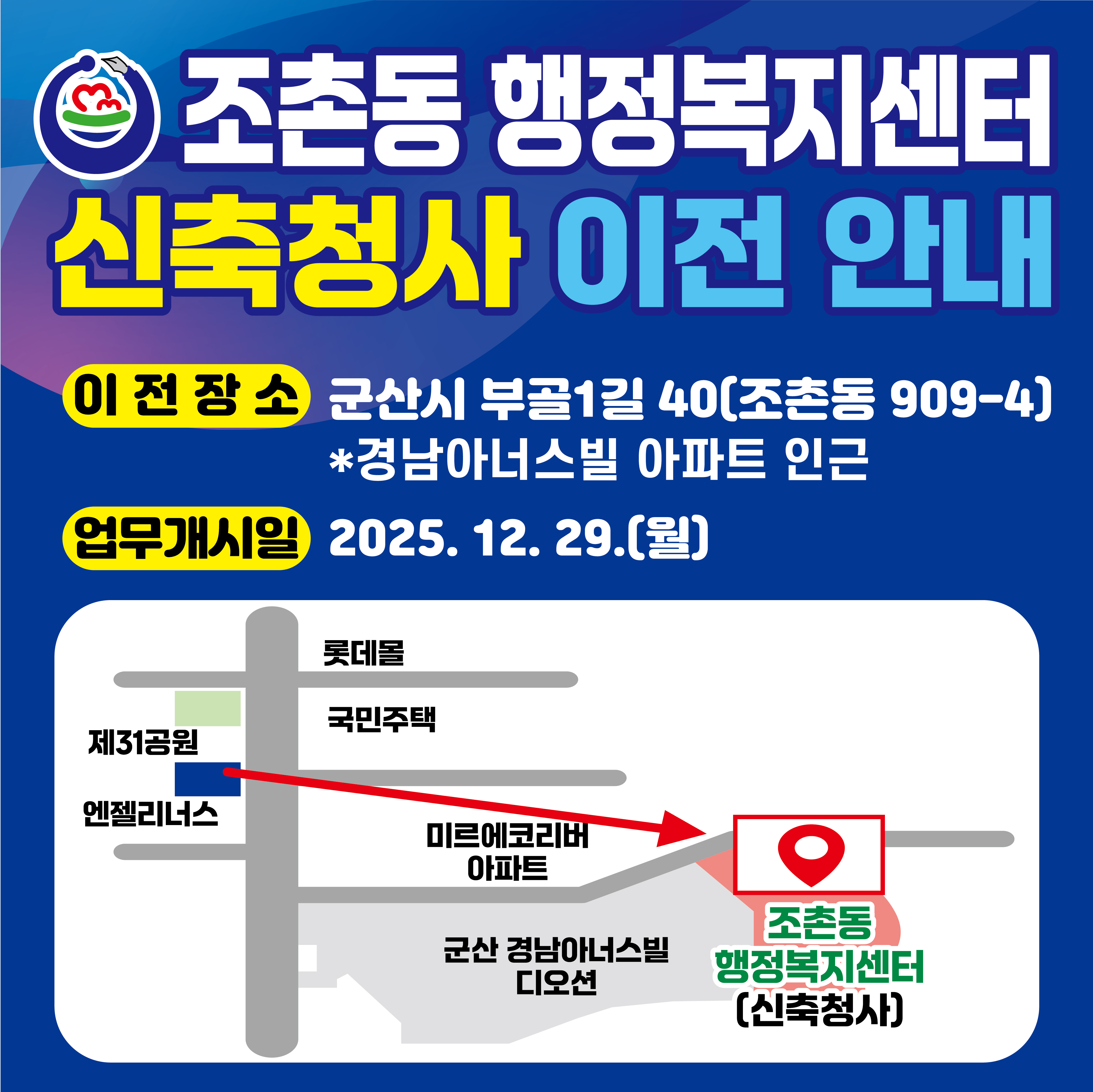 - 조촌동 행정복지센터 이전 안내 -