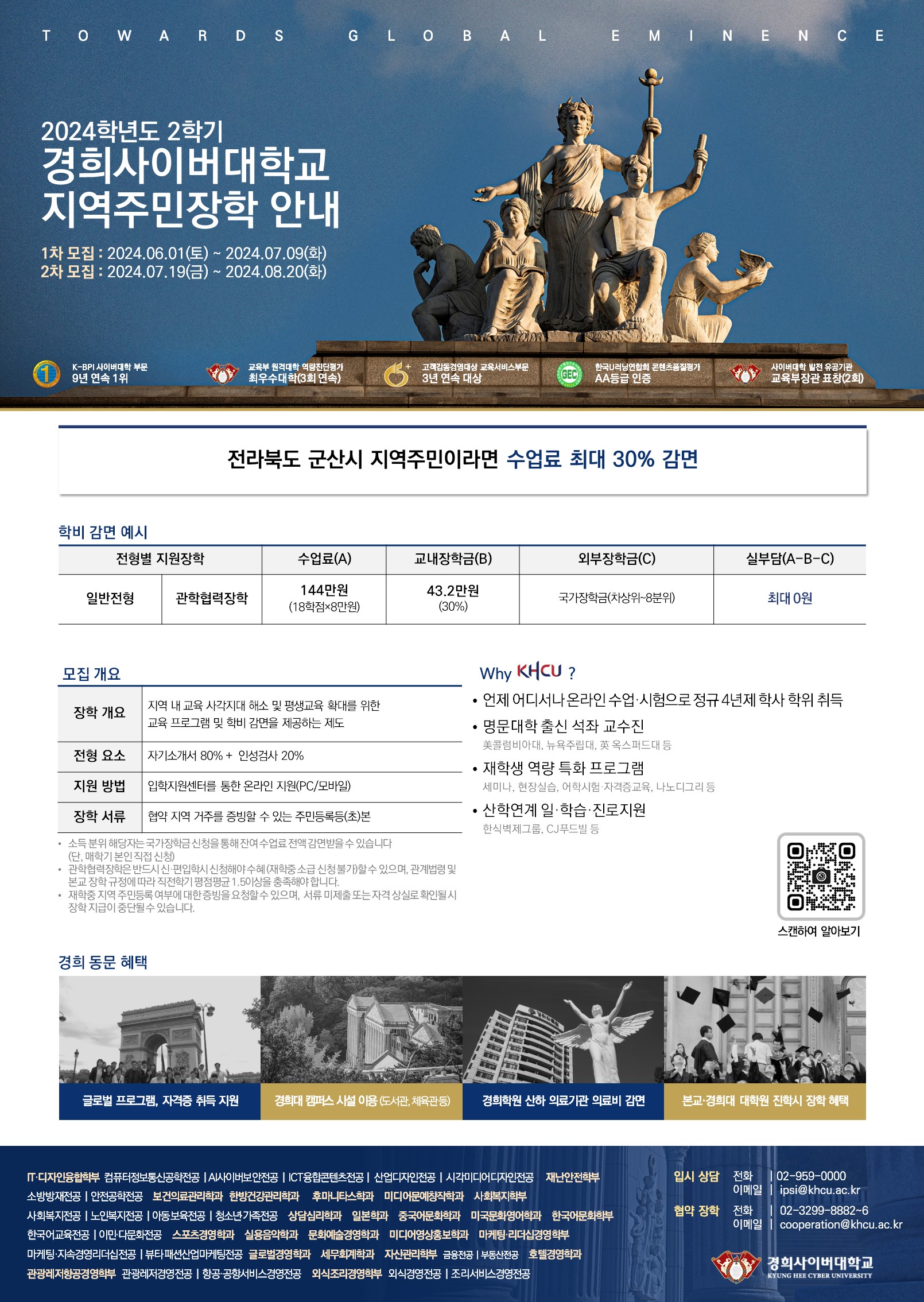 지역주민 장학혜택으로 학부과정 수업료 매학기 30% 감면되오니 군산시민들의 많은 관심 부탁드립니다!