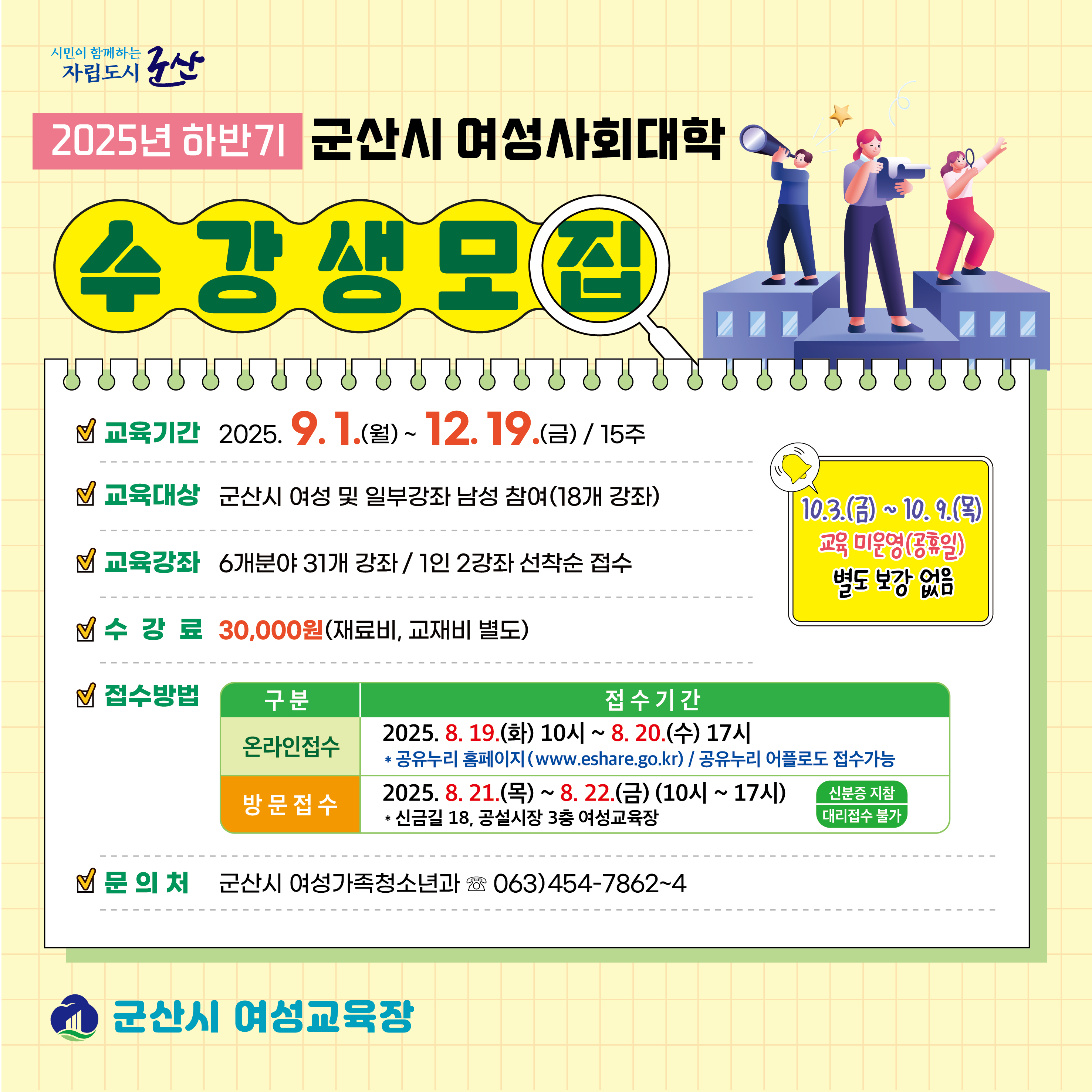 2025년 하반기 여성사회대학 프로그램 수강생을 모집합니다.