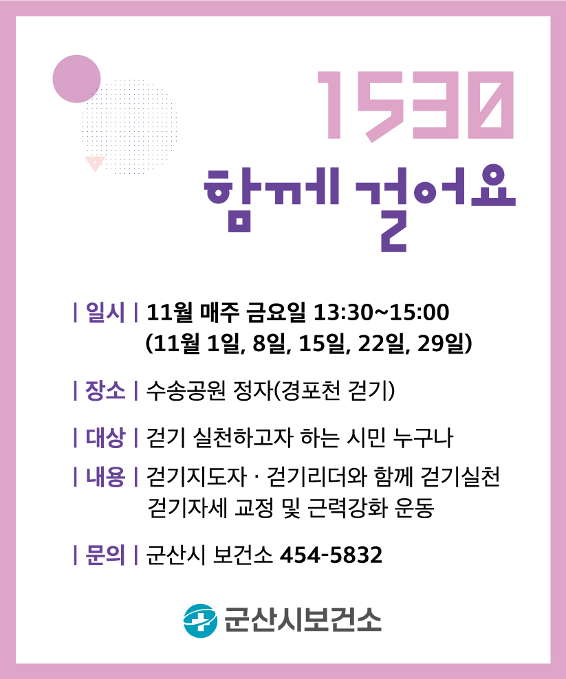725 '1530 함께걸어요' 걷기참여 안내 다운받기 건강관리과 24.10.31 3502