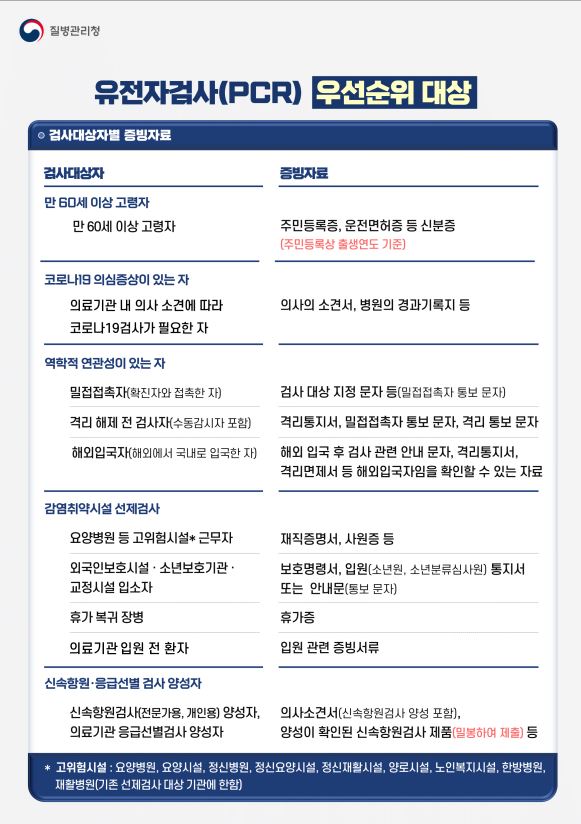 330 PCR검사 대상자 및 구비서류 안내 다운받기 보건행정과 22.02.07 12813