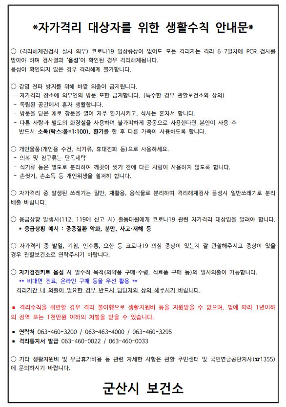 334 자가격리자 생활수칙 안내문 다운받기 보건행정과 22.02.12 6488