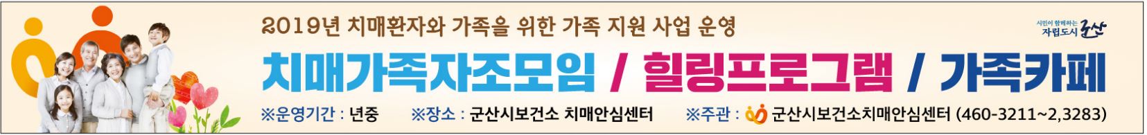 - 내 용 : 치매가족교육, 가족자조모임, 힐링프로그램, 가족카페