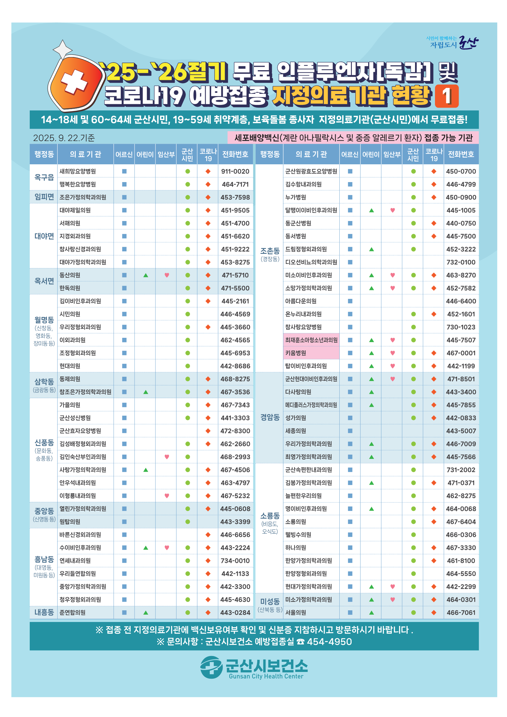 25-26절기 독감(인플루엔자) 및 코로나19 예방접종 지정 의료기관 현황