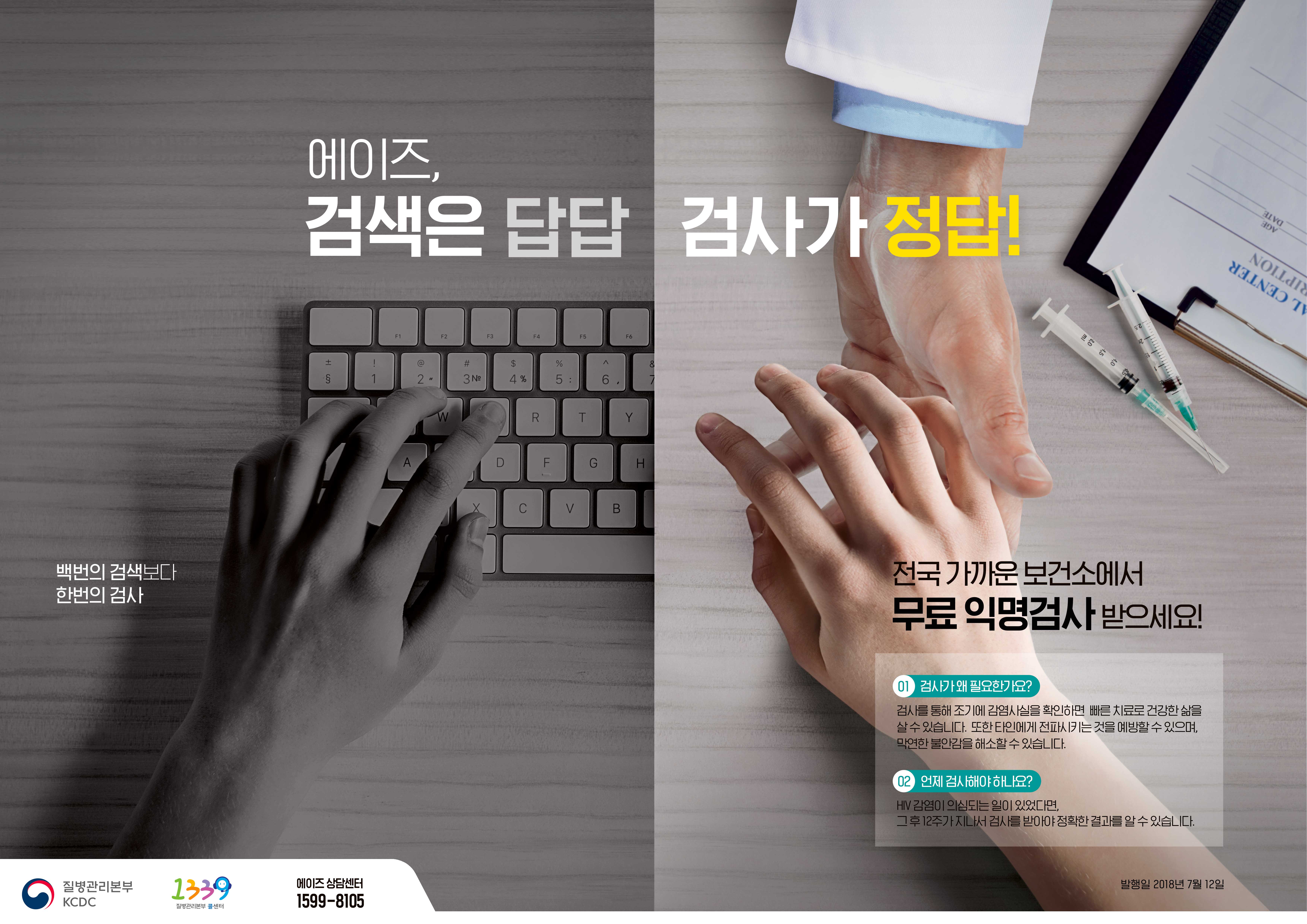 에이즈 관련 콘텐츠(리플릿, 포스터)를 배포하오니 의료기관 등에서는 지역사회 홍보에 적극 활용하여 주시기 바랍니다.